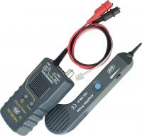 Индикатор обрыва. Поисковый комплект в составе датчика с тональным генератором и усилителя-приёмника для проверки телекоммуникационных систем и кабельных распределительных сетей, обнаружение проводов, «прозвонка» многожильных кабелей без нарушения изоляционной оболочки и гальванического контакта, тесты непрерывности и полярности, подключение до 2-х тестируемых линий со светодиодной индикацией, тест сопротивления цепи, диода, емкости, постоянного и переменного напряжения с отображением значения звуковой и светодиодной сигнализацией (изменение частоты и уровня); приемник 270х50х25 мм, 125 г, 9 в "крона"; генератор 143х74,5х33,6 мм, 318 г, 1,5 В×6 (АА)